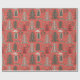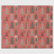 Nordic Green and White Tree Pattern on Red Wrapping Paper