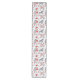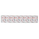 This distinctive table runner features a beautiful and intricate Nordic or Scandinavian pattern in blue grey, red, and white. Images include floral designs, a decorated pony, hearts and line drawings. Unique and very pretty!