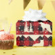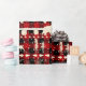An elegant neutral holiday wrapping paper featuring a Nordic sweater winter animal pattern in holiday red, buffalo plaid, beige and black.