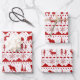An elegant neutral holiday wrapping paper featuring a Nordic sweater winter animal pattern of red animals against a pure white background. An excellent choice for a neutral and ageless holiday wrapping paper.