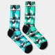 Nordic Sweater Winter Animals Aqua Blue Plaid Socks