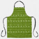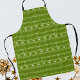 Festive winter themed design features Nordic / Scandinavian knit pattern of Christmas trees, and stars or snowflakes on green background.