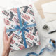 Festive rustic red and dusty blue Nordic winter horses holiday pattern wrapping paper. Rustic design features Nordic style horses and flowers in trendy shades of red, blue and white.