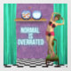 Fun & funky window cling features "Normal is overrated" in neon font with vintage woman in cute swimsuit standing on chair...let's also not forget to note the goldfish jumping from the crowd into his own bowl!