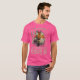 I give wanted to give this a 4 instead of a 5 because these Basic DARK T0shirts run unexpectedly SLIM or Narrow. Which is great if you do not have a potbelly, but I have a paunch. It isn't the shirt's fault that I've got a beer belly. The design and shirt itself is a quality cotton shirt. The color is more of a deep purple, but still a very pretty color. The Basic DARK T-shirts run a bit SLIMMER than the Basic Ts. The neck is a fraction narrower (or seems to be narrower) also. I'm a paunchy middle-aged woman and my neck is 12 inches (31cm) thick and the neckline fell about the same as in the photo of the man, and I had the desire to tug it a bit. So if you're a thick necked man or like loose shirts, be aware these are slimmer shirts. Once I get rid of my lockdown paunch it'll look great. The shirt washed well in cold water with no apparent bleeding. We don't have a dryer, so it hung dry. Did not shrink. Love the colors and the design. The design looks smaller on my shirt than it does on the model on-line. But still, it looks good on the shirt. The printing looks as it does on the model, just the size seems fractionally smaller. Washed garment in cold water, hung dry and design appeared unaffected.