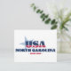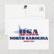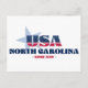 North Carolina postcard. A creative typography design that captures North Carolina's essence with bold red, white, and blue colours, and patriotic elements, including stars and stripes.
