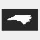 The shape of the state of North Carolina in black and white. You can change the background colour or add a custom souvenir text message.