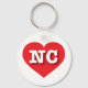 This keychain features a vibrant red heart containing the bold, white, upper case letters NC, the official abbreviation for North Carolina, the tar heel state.