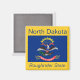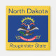 An authentic premium quality image of the flag of North Dakota set between the state name and nickname over a flag-colour background.