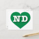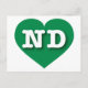 This postcard features a vibrant green heart containing the bold, white, upper case letters ND, the official abbreviation for North Dakota, the peace garden state. The reverse side of the card is blank, awaiting your handwritten sentiments or personalised text.
