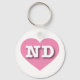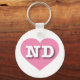 This product features a vibrant pink heart containing the bold, white, upper case letters ND, the official abbreviation for the state of North Dakota.