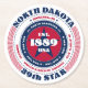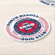 This paper coaster has a patriotic circular typography design with red, white, and blue colours representing the United States of America flag. The text includes the state's name North Dakota, its capital Bismarck, its residents' name North Dakotans, the Midwest region, its time zone(s), and geographic coordinates. North Dakota was the 39th state to gain its statehood in 1889. It is represented with text as the "39th star" in this design. This paper coaster is great as a souvenir or for parties and businesses. All shape options are available, however, you may need to adjust the design size in the design tool to make it fit correctly.
