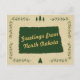 A rustic nature theme inspired design. The state of North Dakota sketched in a forest green colour. The text says Montana Greetings but you can personalise it with your own text. The border is a foliage leaf branch with some pine tree accents on top and bottom. The background is a light brown kraft colour with a snowflake watermark texture. Customise these cards for the Christmas holiday season. They are also great for general use.