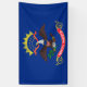 This design features the state flag of North Dakota, which is located in the midwestern and northern regions of the United States. North Dakota was admitted to the US Union on November 2, 1889, along with its neighbouring state, South Dakota. North Dakota contains the tallest man-made structure in the Western Hemisphere, the KVLY-TV mast. North Dakota is sometimes known as the "Peace Garden State", the "Roughrider State" or "Flickertail State". The capital of North Dakota is Bismarck and its largest city is Fargo. Other major cities in North Dakota include Grand Forks, Minot, West Fargo, Williston, Dickinson, Mandan, Jamestown, Watford City, Wahpeton, Devils Lake, Valley City, Grafton, Lincoln, Beulah, Horace, Stanley, New Town, Rugby, Casselton, Hazen, Bottineau, Lisbon, Carrington, Mayville, Langdon, Oakes, Harvey, Hillsboro, Bowman, Garrison, Surrey, New Rockford and Tioga.