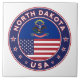 Badge of North Dakota with flag of North Dakota and flag of USA colours, rounded shape.