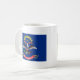 This mug design features the North Dakotan flag on one side and a map of North Dakota on the other.