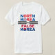Political satire. The top reads "North Korea". The O has been replaced by the white circle and red star from the North Korean flag. The text is in the blue and red of the flag. Below this is a trigram from the South Korean flag forming as a divider to the text below it. The Flag of South Korea, or Taegukgi ( as Taegeukgi) has a red and blue Taiji yin- and yang-symbol in the centre, I have used this to form the O in Korea. The text reads North Korea | False Korea