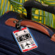 This bright North Korea luggage tag includes authentic airport information and a details pocket on the reverse.