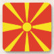 A design based on the flag of North Macedonia covers the front of this square coaster. Most flags have a 3:2 or 2:1 aspect ratio but here have been intelligently reshaped by FlagAndMap to fit the product while preserving the integrity of the original design. These coasters are an ideal way to add a little North Macedonian flair to your home