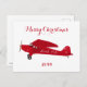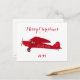 Vintage single-engine red aeroplane Christmas postcard from the North Pole. Aeroplane drawing by Claudine Boerner.