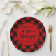 A charming design for a rustic farmhouse Christmas look, this Victorian style Christmas holiday design has a popular red and black buffalo plaid pattern with a solid red square frame containing lovely vintage text spelling out "North Pole Bed and Breakfast - Fresh Cookies Served Daily". A reindeer is silhouetted on the design. These paper plates are available in 2 sizes: Shown here in the larger 9-inch diameter size, they are also available in 7-inch diameter size.