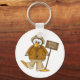 A penguin in a jacket holding a sign that says north pole. This design looks really effective on these Keychain