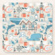 North Sea Cute Doodle Pattern Square Paper Coaster