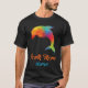 I give wanted to give this a 4 instead of a 5 because these Basic DARK T0shirts run unexpectedly SLIM or Narrow. Which is great if you do not have a potbelly, but I have a paunch. It isn't the shirt's fault that I've got a beer belly. The design and shirt itself is a quality cotton shirt. The color is more of a deep purple, but still a very pretty color. The Basic DARK T-shirts run a bit SLIMMER than the Basic Ts. The neck is a fraction narrower (or seems to be narrower) also. I'm a paunchy middle-aged woman and my neck is 12 inches (31cm) thick and the neckline fell about the same as in the photo of the man, and I had the desire to tug it a bit. So if you're a thick necked man or like loose shirts, be aware these are slimmer shirts. Once I get rid of my lockdown paunch it'll look great. The shirt washed well in cold water with no apparent bleeding. We don't have a dryer, so it hung dry. Did not shrink. Love the colors and the design. The design looks smaller on my shirt than it does on the model on-line. But still, it looks good on the shirt. The printing looks as it does on the model, just the size seems fractionally smaller. Washed garment in cold water, hung dry and design appeared unaffected.