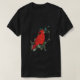 I give wanted to give this a 4 instead of a 5 because these Basic DARK T0shirts run unexpectedly SLIM or Narrow. Which is great if you do not have a potbelly, but I have a paunch. It isn't the shirt's fault that I've got a beer belly. The design and shirt itself is a quality cotton shirt. The color is more of a deep purple, but still a very pretty color. The Basic DARK T-shirts run a bit SLIMMER than the Basic Ts. The neck is a fraction narrower (or seems to be narrower) also. I'm a paunchy middle-aged woman and my neck is 12 inches (31cm) thick and the neckline fell about the same as in the photo of the man, and I had the desire to tug it a bit. So if you're a thick necked man or like loose shirts, be aware these are slimmer shirts. Once I get rid of my lockdown paunch it'll look great. The shirt washed well in cold water with no apparent bleeding. We don't have a dryer, so it hung dry. Did not shrink. Love the colors and the design. The design looks smaller on my shirt than it does on the model on-line. But still, it looks good on the shirt. The printing looks as it does on the model, just the size seems fractionally smaller. Washed garment in cold water, hung dry and design appeared unaffected.
