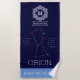 Northern constellation Orion. The colour of the stars is roughly real. Stars and space objects' names. Stylish and beautiful beach towel for anyone. Customisable. You can change the monogram letter, name, and template text. You can transfer the design to a variety of products. Do not forget to use the "Edit Design" or the "Personalise" (as the case may be) button to adjust the image on the product, relocate it or add some text to it. You can also change the colour of the background. Just be creative, enjoy, and be happy.