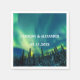 Northern lights, Aurora Borealis Wedding napkins. Night sky, stars, trees napkins. Personalise with your Names and the date of the Wedding.