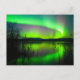 Northern lights mirrored on lake postcard