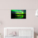 Intense northern lights (Aurora borealis) over Lake Laberge, Yukon Territory, Canada, with silhouettes of willows on lake shore.