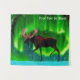 An ever so slightly stylised image of a moose silhouetted against the Northern Lights. Add your own text.