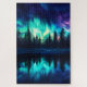 The vibrant hues of green, blue, and purple dance across the sky, illuminating the silhouetted forest below and reflecting in the serene waters. This puzzle promises an engaging and rewarding Relaxation Activity, making it one of the ideal gifts for jigsaw puzzle lovers.