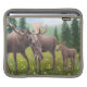 Original fine art design of a Moose family from Alaska by artist/designer Carolyn McFann of Two Purring Cats Studio printed on a quality iPad sleeve by Rickshaw.