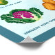 A humourous take on gardening in places with cold climates such as Alaska, Minnesota and Canada. You can't grow everything, but try those illustrated here: Yukon Chief sweet corn, snow peas, Yukon Chief tomato, January King cabbage, Yukon Gold potato, Icicle radish, and Iceberg lettuce. Each is labelled and text reading, "THE NORTHERN GARDEN" also appears. You may easily change the border colour or eliminate it completely.