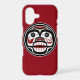 Protect your Apple iPhone with this sturdy Case-Mate Barely There iPhone XR Case with a beautiful Haida Weeping Skull from British Columbia, Canada. The background is a deep red.