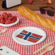 The Norway flag with its red and blue. This design looks really effective on these Paper Plates