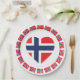 The Norwegian flag in the shape of a heart. Small regular flags ones around the edge and a big heart shaped one in the center. Perfect for your celebration.