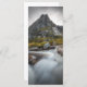 This is a landscape photograph of a waterfall and a beautiful mountain on the islands of Lofoten in North Norway, Scandinavia. Photo location: Flakstadøya.