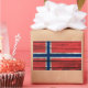 This rugged design features the flag of Norway painted on old wooden boards. The planks of wood have a weathered look with peeling paint visible throughout. This unique Norwegian flag pattern is a unique way to show off your patriotism