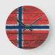 Norwegian Flag with Rough Wood Grain Effect Round Clock