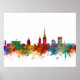 Watercolor art print of the skyline of Norwich, Norfolk, England, United Kingdom