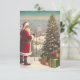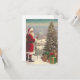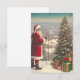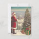 Beautiful Christmas Vintage Invitation card with Santa Claus in a snowy landscape and Christmas tree and xmas gifts.