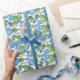 A roll of pretty Giftwrap, with a nostalgic pattern of Bright Blue Morning Glory Flowers on a White background. Part of the Posh & Painterly 'Morning Glory' collection.