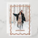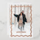 Drawing inspiration from the groovy styles of the past, a wavy line border design gracefully encircles the photo. In rose gold foil, the retro-inspired lines dance across the card, adding a touch of whimsy and sophistication. The warm hue of the rose gold foil creates a beautiful contrast against the backdrop of your photo, infusing the design with a subtle radiance.