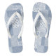 A chic pair of Flip Flops, with a nostalgic Faux Patchwork of floral, check and polka dot patterns, in Indigo Blue and White. Part of the Posh and Painterly 'Indigo' collection, this pattern can easily be adjusted to fit any size.