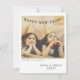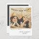 A Happy New Year party streamer overlays your photo (as if in your photo) on an instant photo-style card. The photo has a Zazzle filter for an aged appearance and your custom holiday greeting is in a handwritten style font.