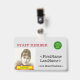 This nostalgic and classic staff badge design features personalised information such as a portrait photo, a business/organisation logo, a staff member name, and a role name. A badge like this could be used to identify somebody as a staff member of a business, company, or organisation. [~Z0000450]